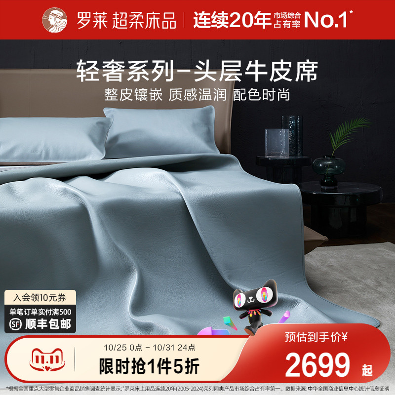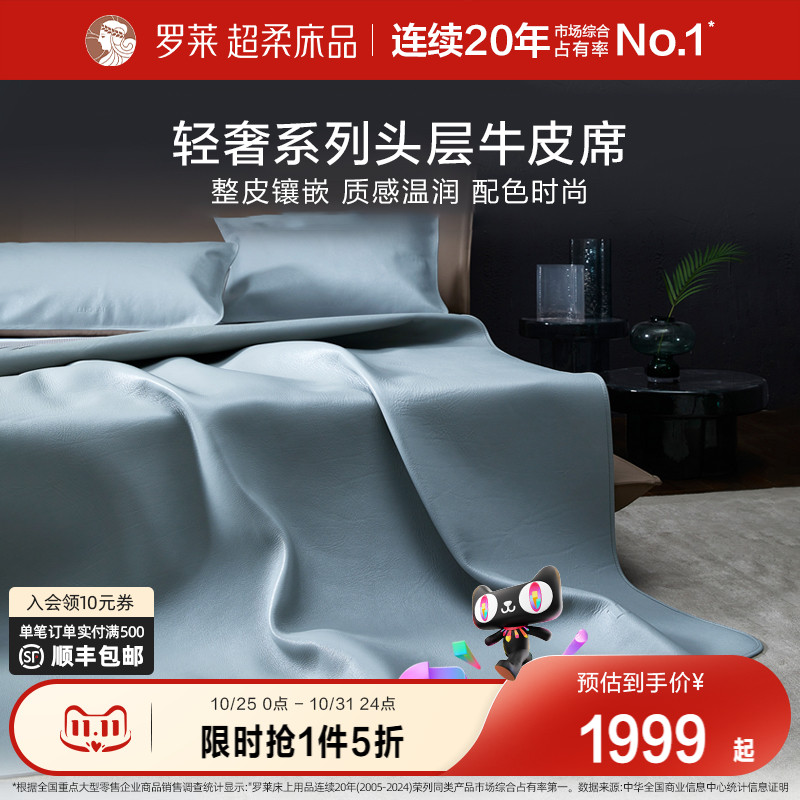 罗莱生活LOVO乐蜗高端牛皮凉席夏季真皮牛皮席子头层水牛软席加厚