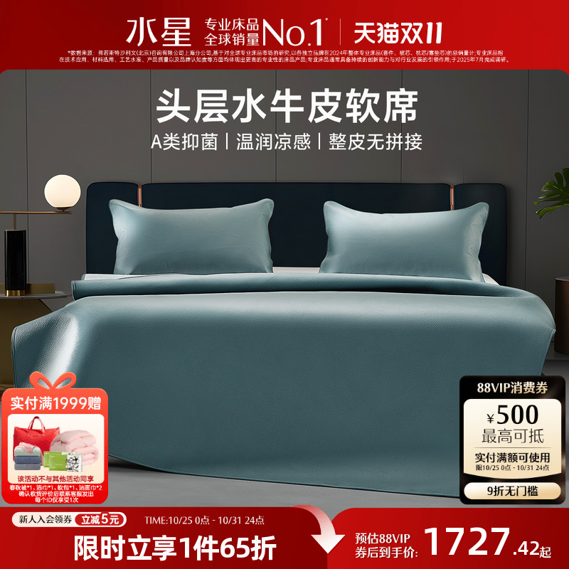 水星家纺牛皮席头层水牛皮席子真皮空调软凉席抑菌夏季家用单双人