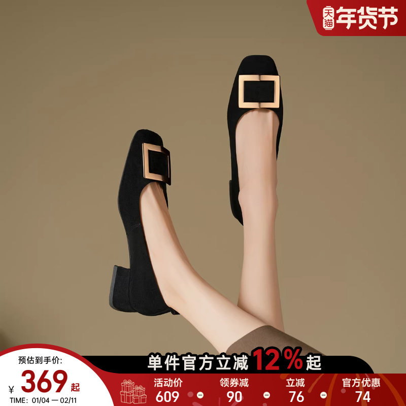 - 方头粗跟中跟单鞋