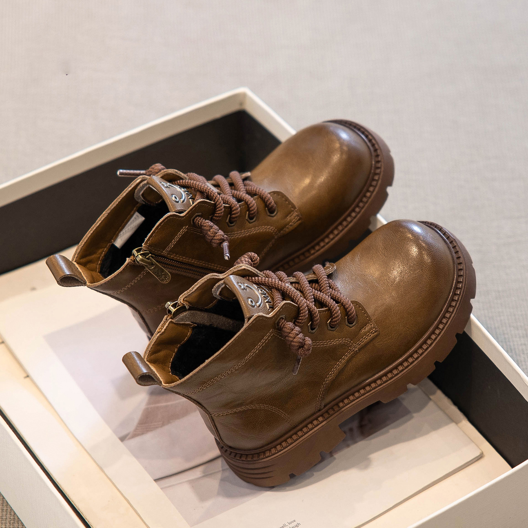 男童马丁靴2025秋冬新款童靴中大童真皮女童春秋短靴儿童加绒靴子