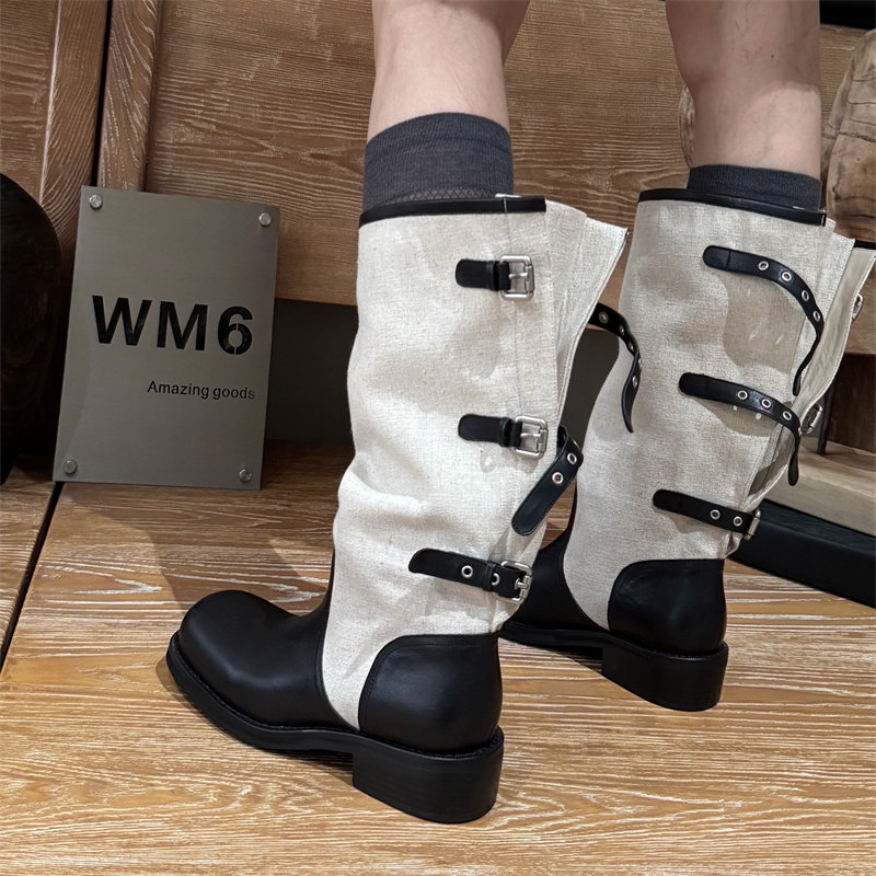 wm6女2026春夏新款欧货真皮扣带厚底复古凉靴时尚高筒长靴骑士靴