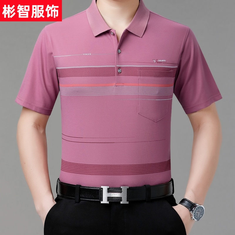 加肥加大夏季短袖polo衫男士胖子宽松运动百搭条纹肥佬t恤爸爸装