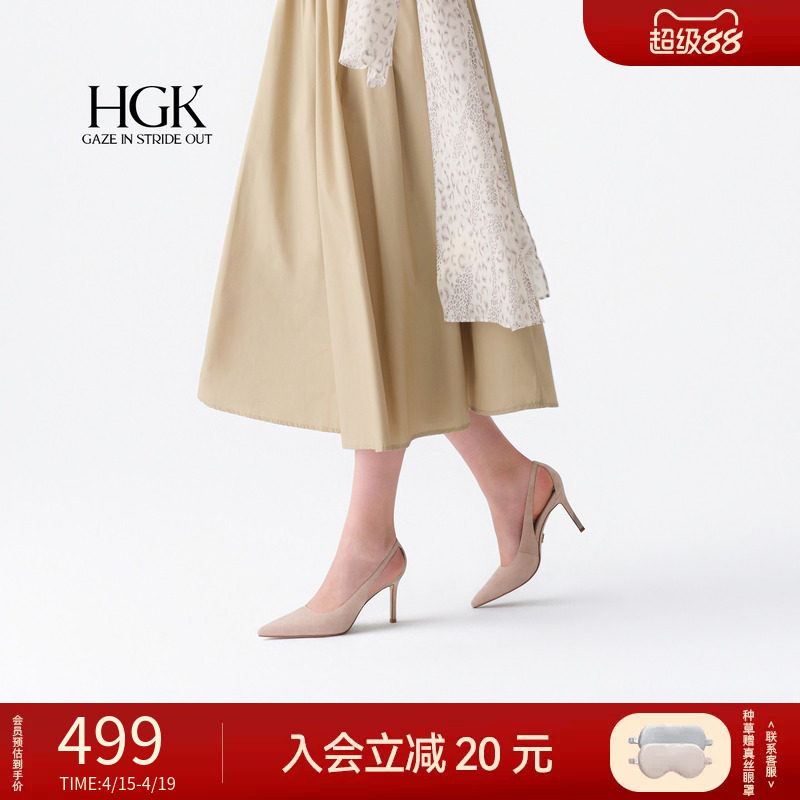 HGK天使之翼 法式优雅气质时尚尖头羊绒真皮凉鞋通勤高跟鞋女款夏