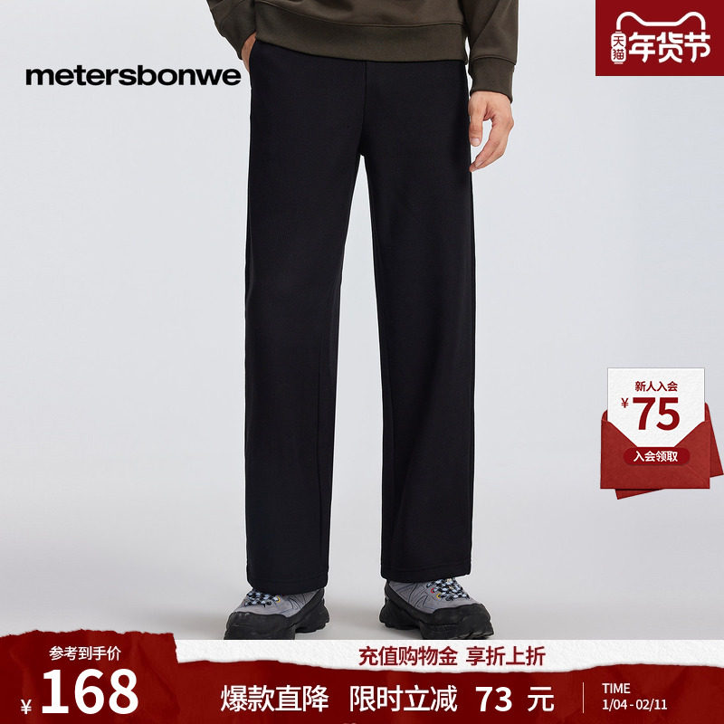 美特斯邦威卫裤男秋冬新款纯色百搭直筒加绒华夫格男女同款阔腿裤
