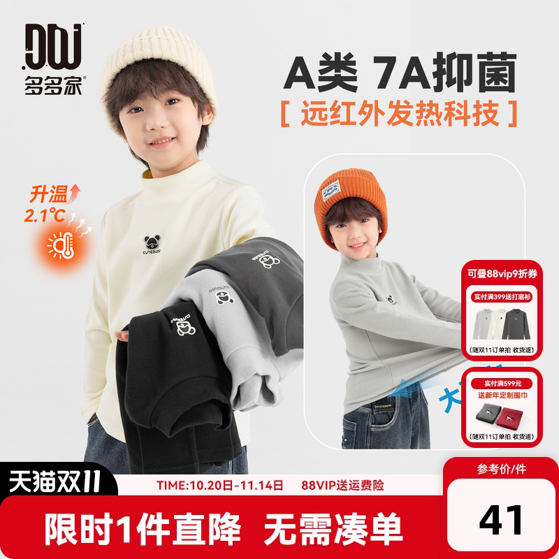 多多家男童打底衫抗菌冬装2025秋冬新款儿童中大童长袖内搭T恤潮