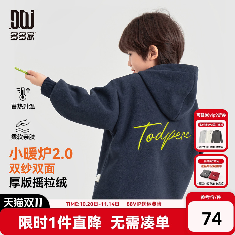多多家男童摇粒绒外套2025秋冬新款儿童冬装刺绣加厚男孩连帽上衣
