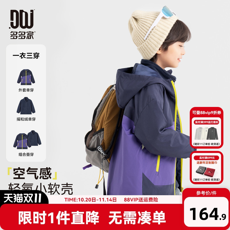 多多家男童外套三合一防泼水秋冬款2025新款儿童中大童冬装拼色潮