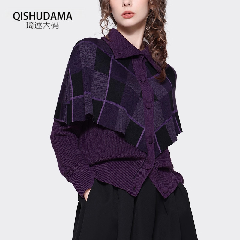 欧洲站2025秋假两件提花毛衣外套女斗蓬针织衫上衣格子别致开衫