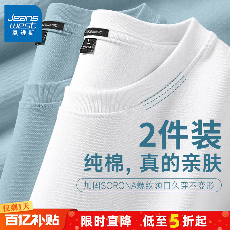 GV真维斯重磅短袖T恤男夏季纯棉纯色正肩白t男士男款白色打底衫A