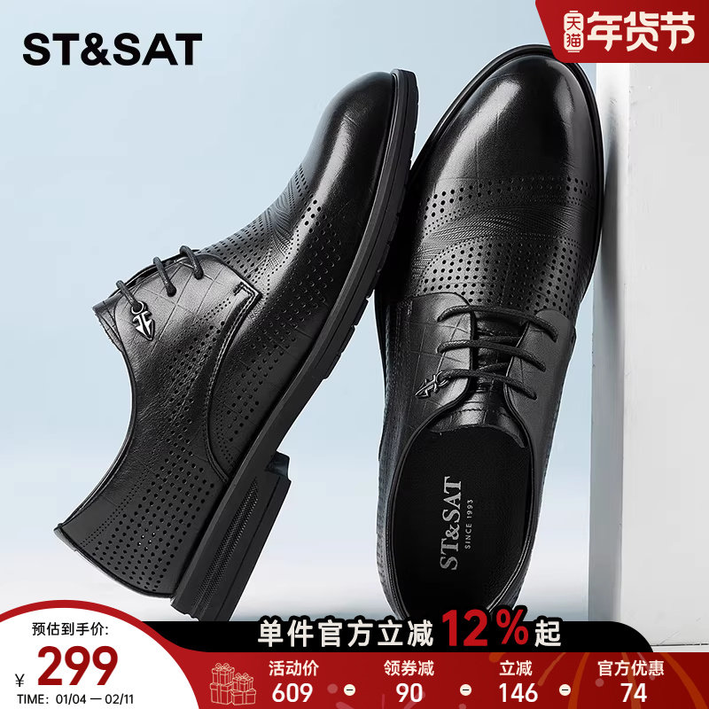 星期六男鞋子2025新款商务正装鞋透气镂空皮鞋夏季英伦风凉鞋男士