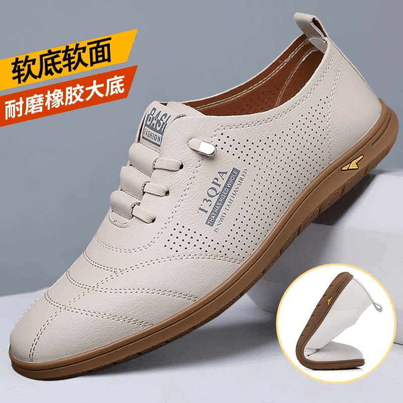 2025夏季男士皮鞋真皮透气镂空软底休闲鞋防滑耐磨潮流百搭男鞋子
