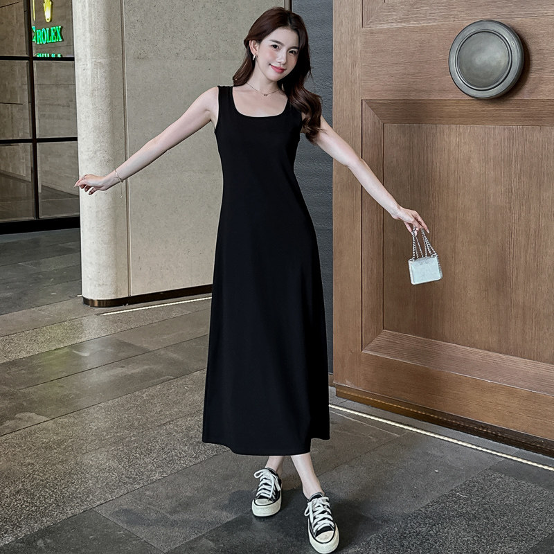 背心连衣裙2025年夏装新款大码时尚显瘦吊带裙内搭开叉打底小黑裙