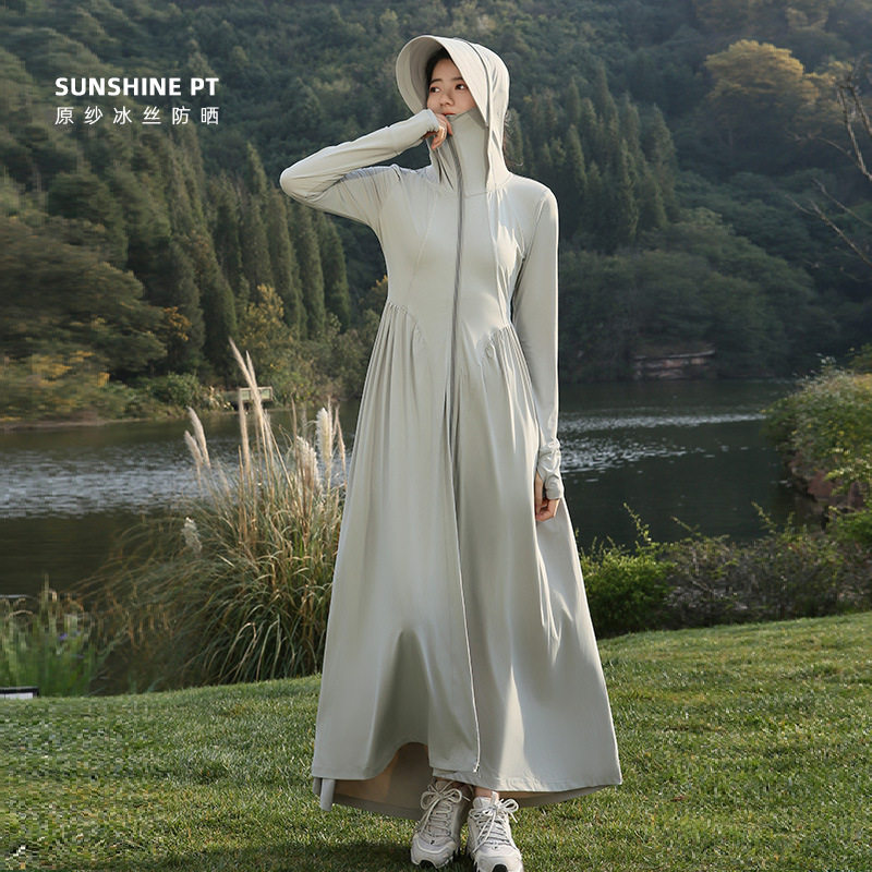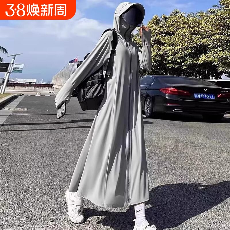骑电动车防晒衣女夏天防紫外线长款宽松透气轻薄冰丝连帽全身遮阳