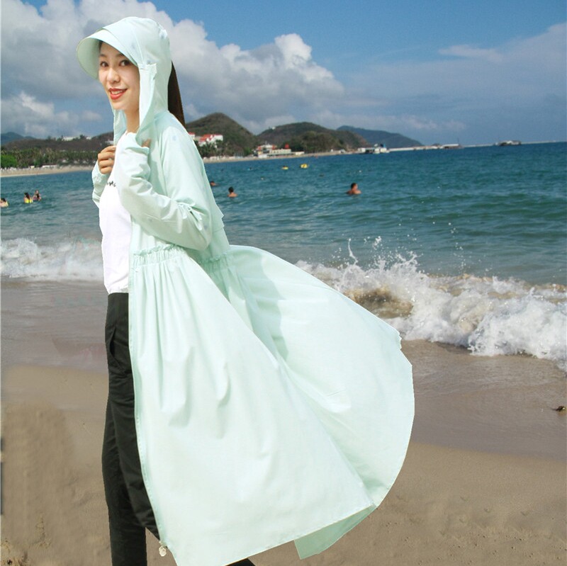 电动车防晒衣女夏季加长款防紫外线连帽遮阳衫轻薄透气百搭防晒服