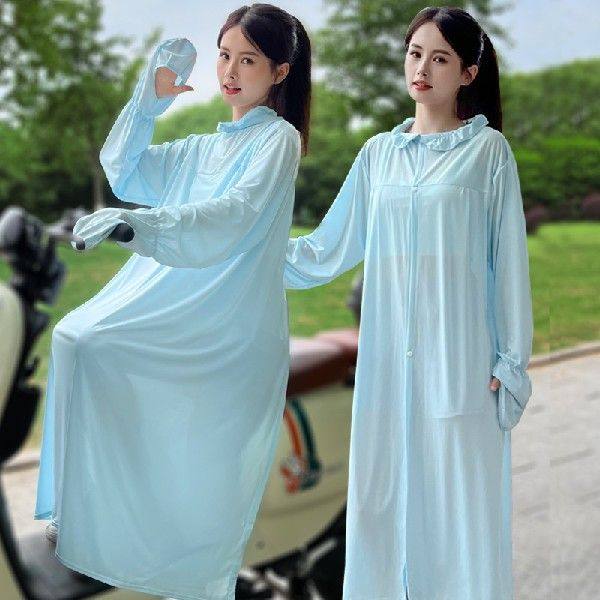 电动车防晒衣女夏季长款冰丝户外连体全身防紫外线罩衫防晒连衣裙