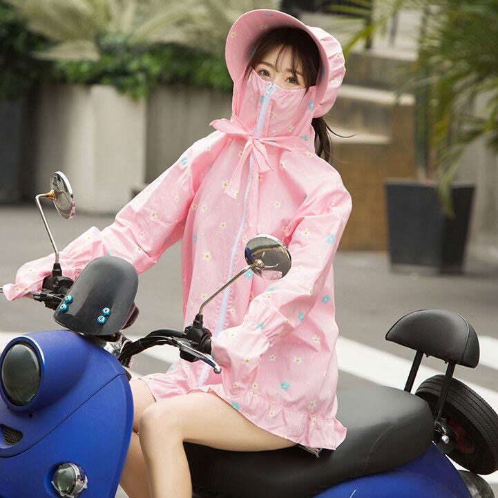 电动车防晒衣女夏薄款防紫外线透气长款户外骑电动车专用遮阳装备
