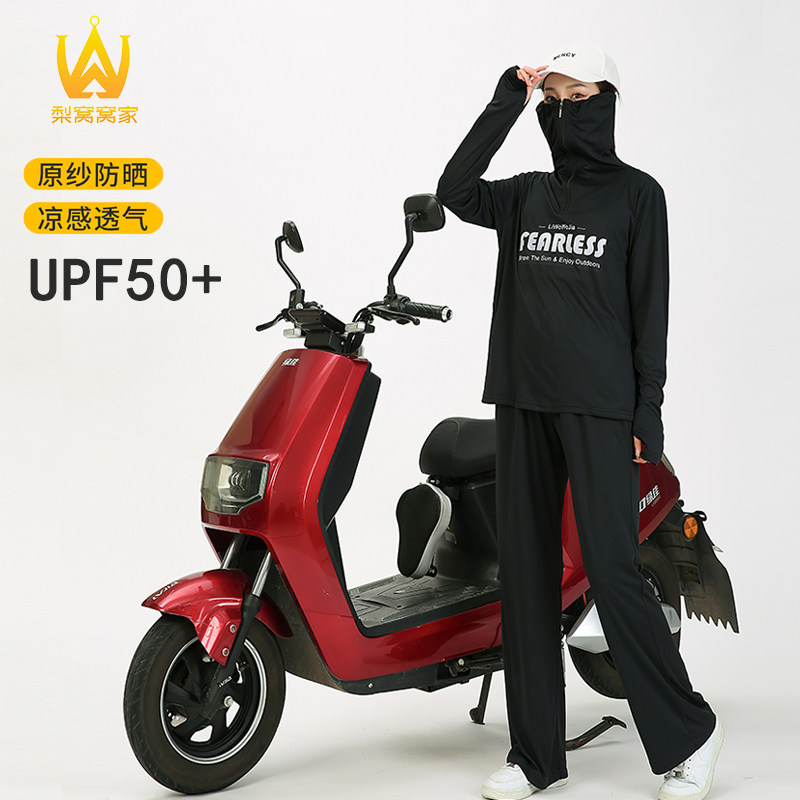 电动车防晒衣服套装女夏两件套防紫外线户外轻薄透气速干原纱冰丝