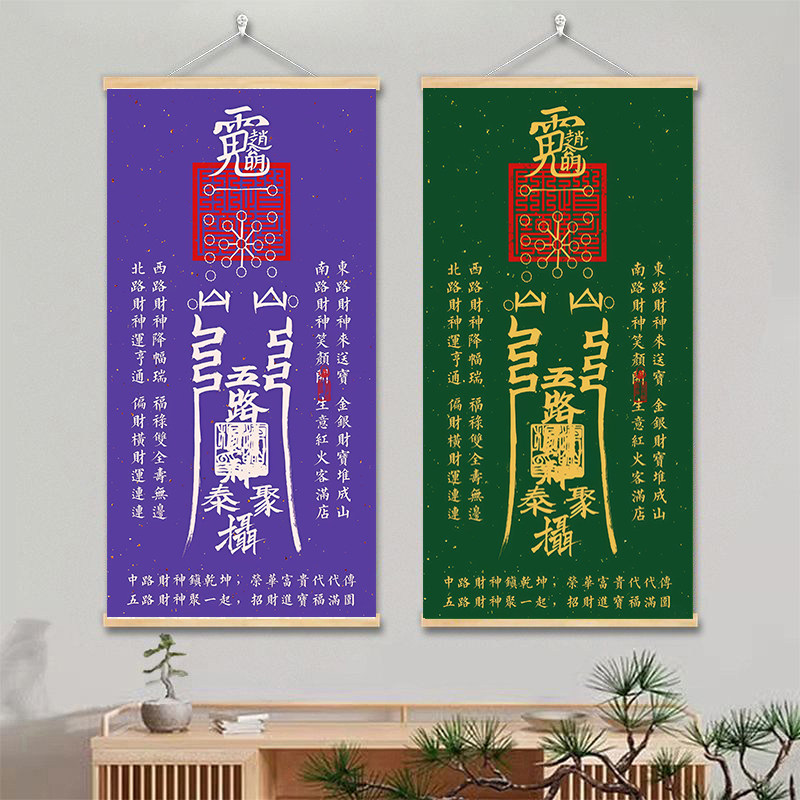 五路财神挂画 福禄双全荣华富贵字画 客厅商铺办公室财位开运挂画