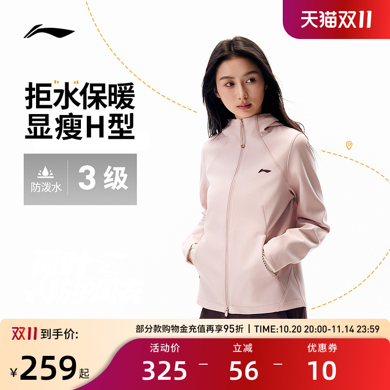 李宁外套女收腰修身风衣防风夹克户外冲锋软壳衣连帽卫衣运动外套