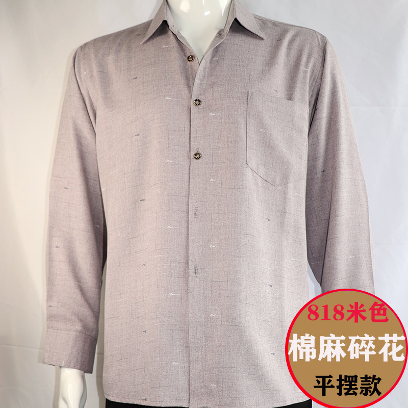 春秋季衬衣男中年长袖爸爸棉麻套装父亲老人爷爷衣服薄款夏天衬衫