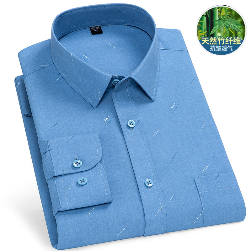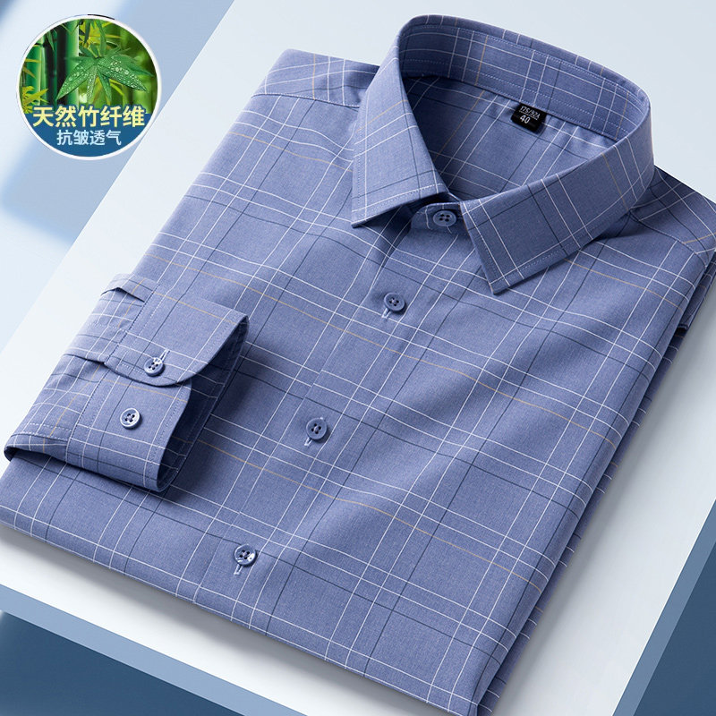秋季薄款中年老人父亲衬衫商务正装宽松免烫长袖衬衣中老年爸爸装
