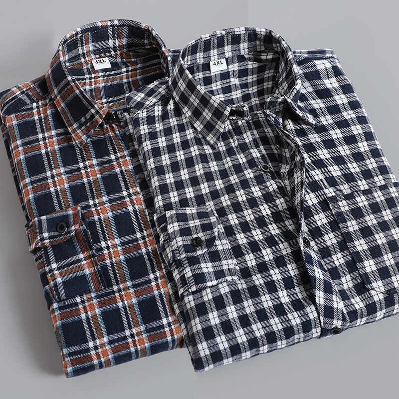 秋冬法兰绒纯棉格子衬衫男长袖磨毛中年休闲全棉男士父亲衬衣宽松