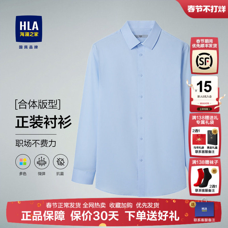 海澜之家中年父亲蓝色长袖休闲衬衫2025秋冬新款爸爸纯色衬衣男