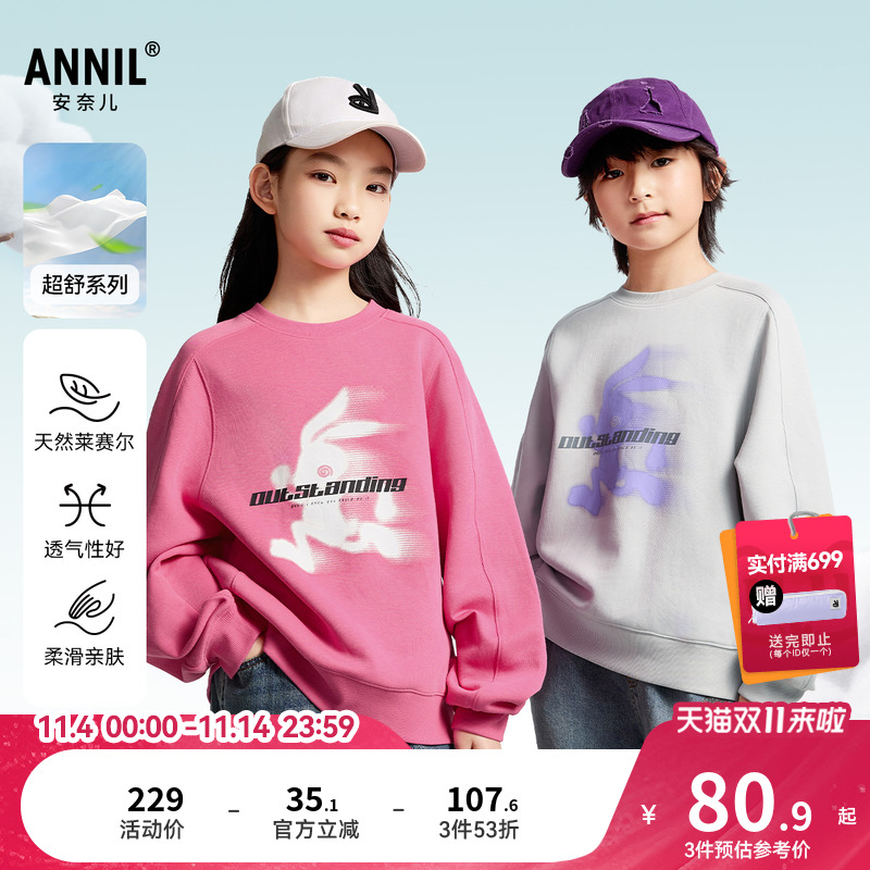 安奈儿童装男童女童圆领长袖卫衣2025春新款卡通透气保暖运动风