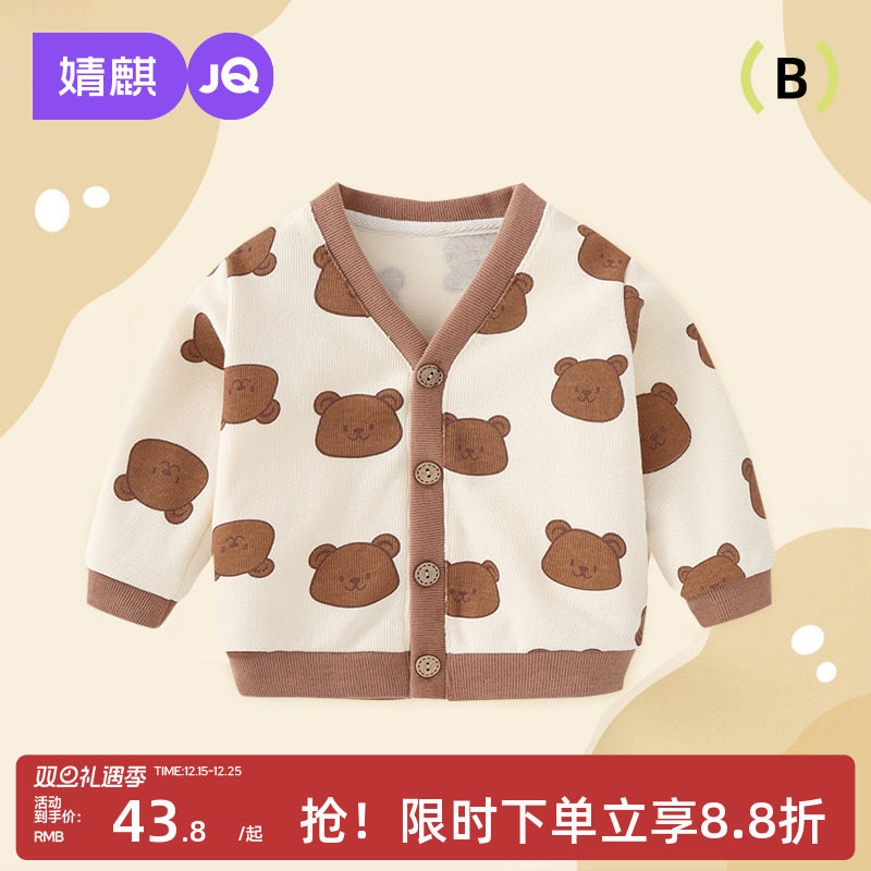 婧麒婴儿外套春秋款宝宝针织开衫春装男童1-3岁幼儿衣服儿童上衣