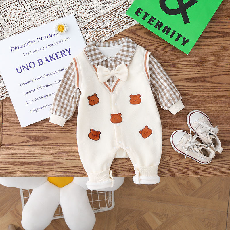 双层婴儿连体衣春秋款0-1岁男宝宝春装3-6个月新生儿衣服满月哈衣