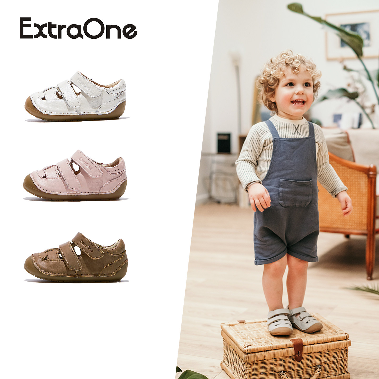 ExtraOne澳洲真皮儿童魔术贴凉鞋男女宝宝防滑学步鞋透气童鞋#422