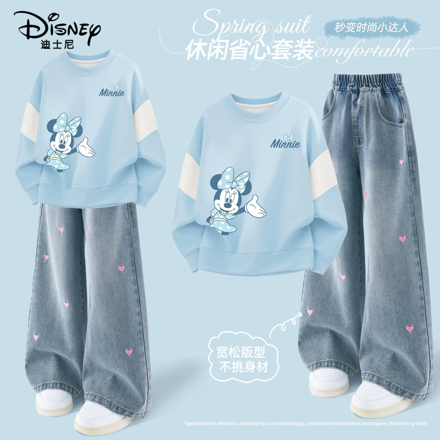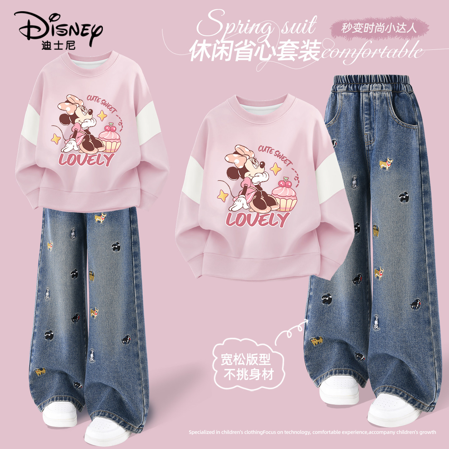 迪士尼女童套装2026新款女大童春季卫衣时尚牛仔裤两件套儿童春装