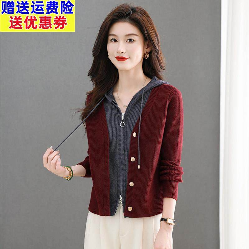 假两件上衣女时尚洋气短款连帽毛衣外套春装2025新款爆款针织开衫