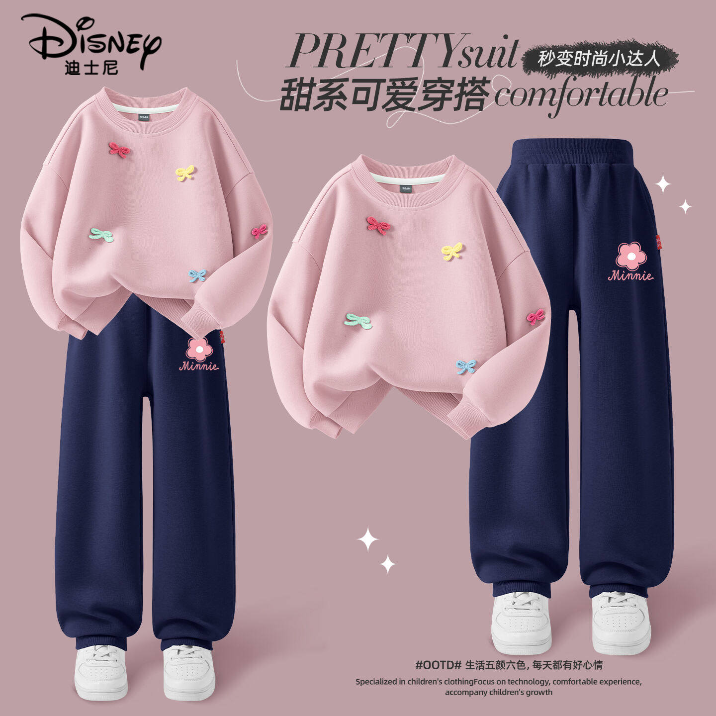迪士尼女童春装套装时尚卫衣春秋款2026新款女孩阔腿裤儿童两件套