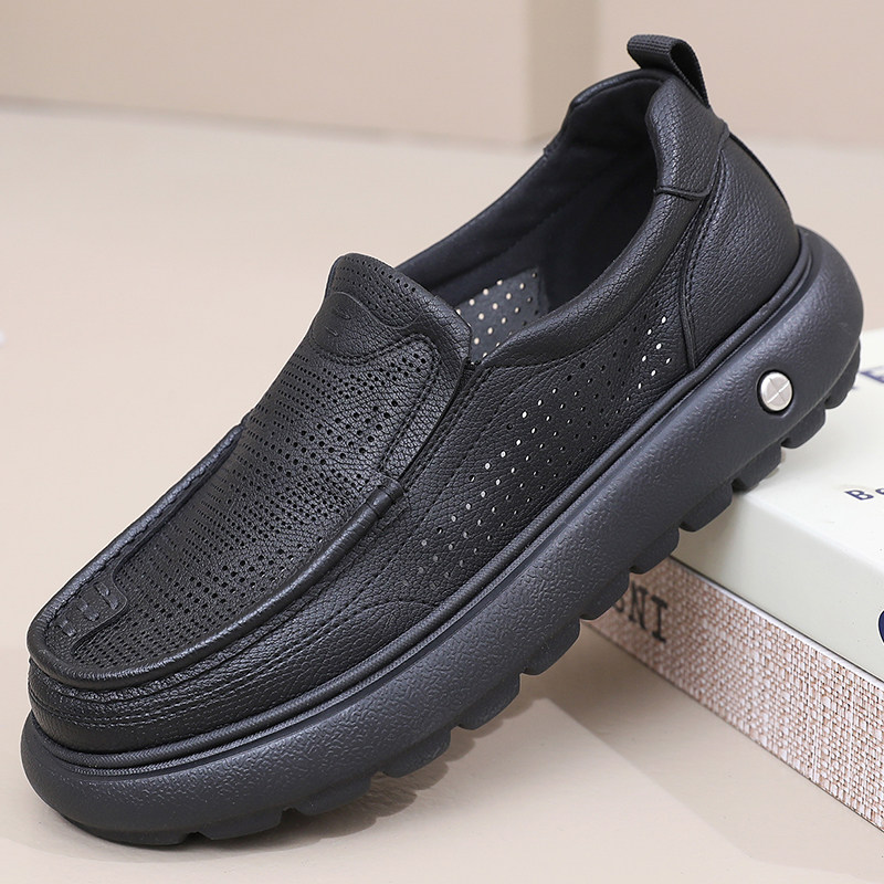 夏季老北京布鞋男网鞋镂空透气中老年仿皮面商务休闲鞋爸爸凉鞋男