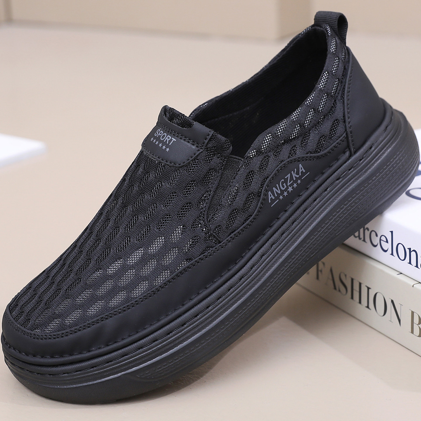 老人头网鞋男春季新款厚底透气网面鞋男一脚蹬老北京布鞋男爸爸鞋
