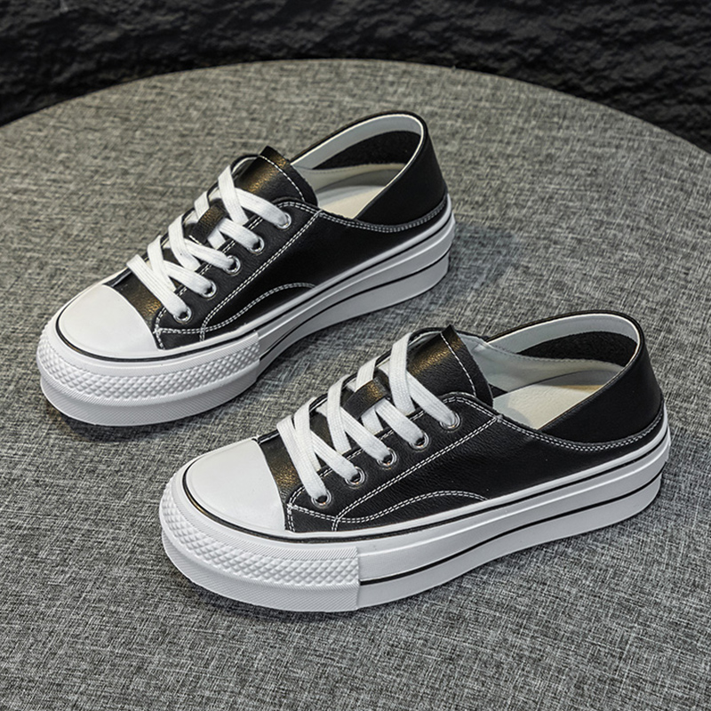贝壳头板鞋女2025夏季新款百搭小个子松糕厚底系带休闲运动小白鞋