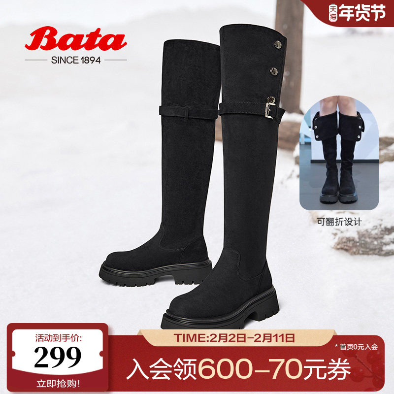 Bata弹力瘦瘦靴女冬季新款粗跟骑士网红过膝长筒靴X021DDC4