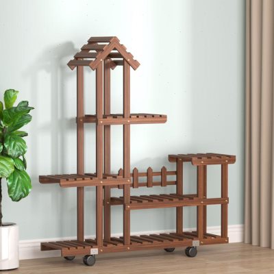 阳台室内外多层实木防腐花架子可移动客厅落地绿萝多肉花盆植物架