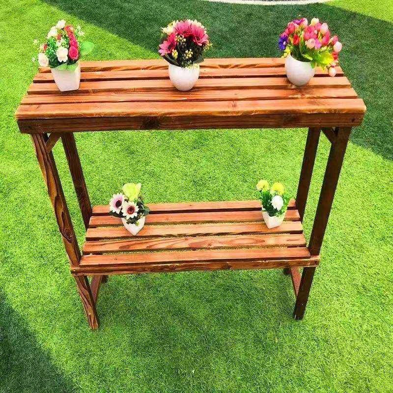 实木碳化防腐花架置物架阳台装饰户外靠墙庭院落地绿植大花盆花桌