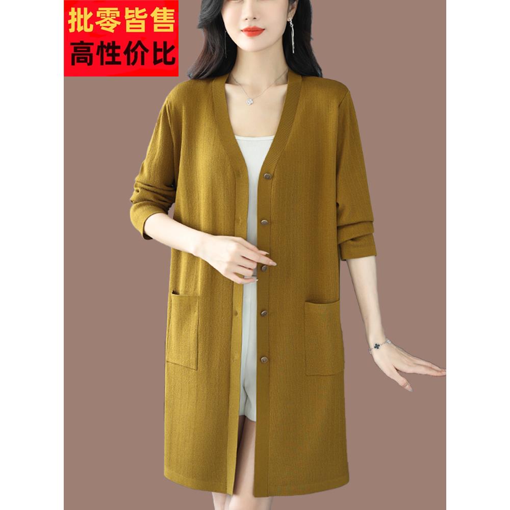 羊毛开衫女士针织衫毛衣外套中长款新款春秋妈妈薄款外搭上衣洋气