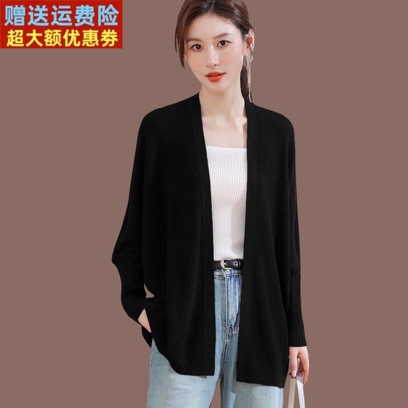 春秋季慵懒风宽松针织开衫女中长款防晒空调衫外搭披肩薄毛衣外套