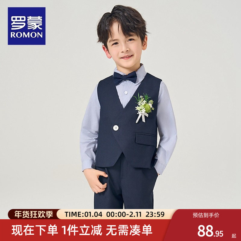 罗蒙儿童礼服男童西装马甲套装主持人钢琴演出服男孩花童西服英伦