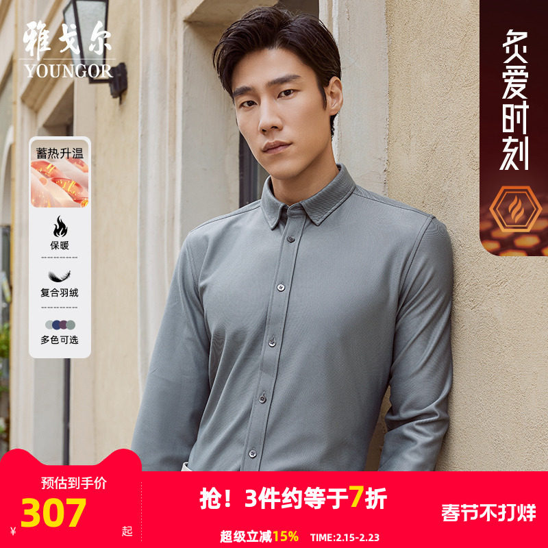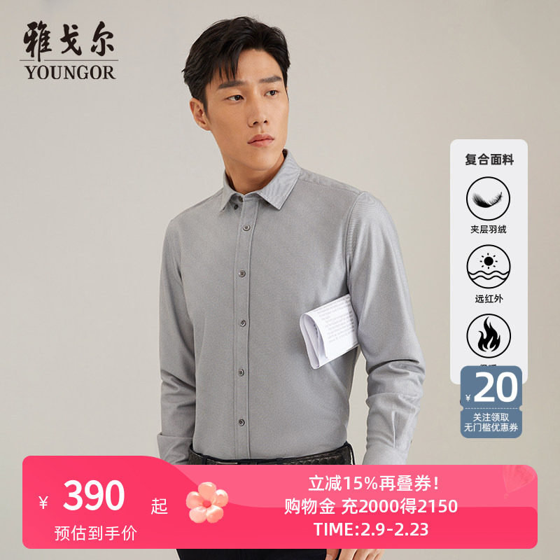 【羽绒衬衫】雅戈尔冬季加厚保暖商务休闲抗菌蓄热爸爸长袖衬衣男