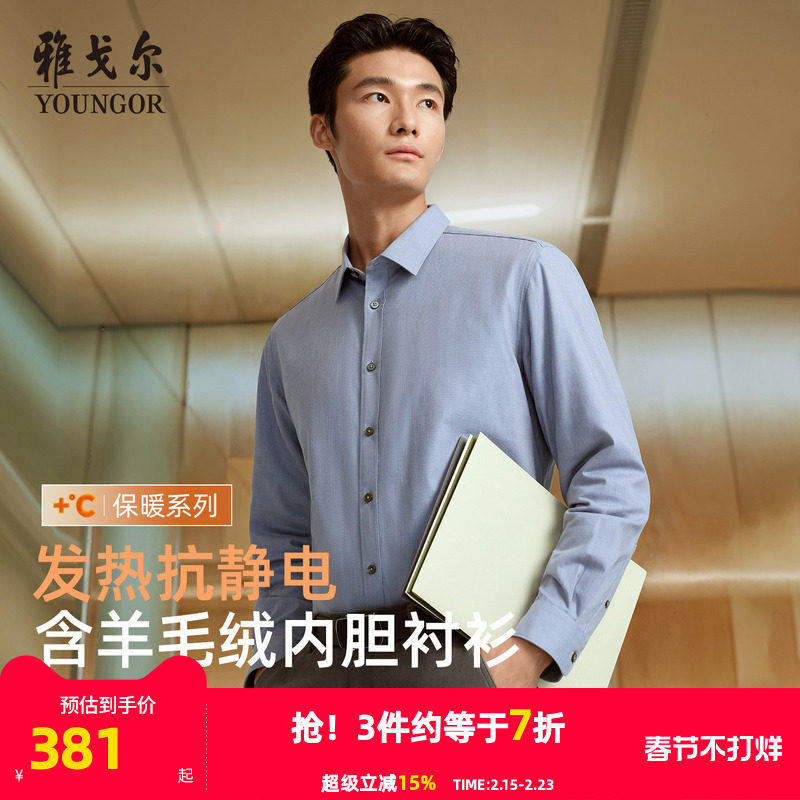 【复合羽绒】雅戈尔冬季加厚保暖商务抗寒羊毛抗菌蓄热长袖衬衫男