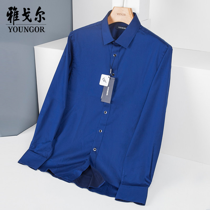 吊牌780元雅戈尔衬衫男长袖深蓝纯色商务衬衣修身免烫微弹折扣秋
