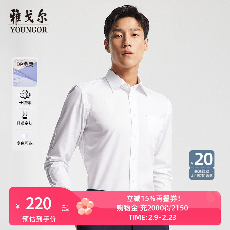 【DP免烫】雅戈尔春秋男士长袖衬衫商务休闲爸爸高级纯棉白色衬衣