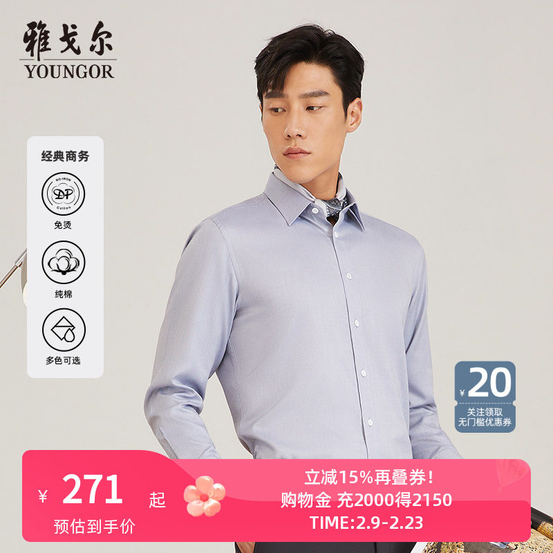 【200支TNDP】雅戈尔春秋新品商务免烫休闲全装衬衬衣长袖衬衫男