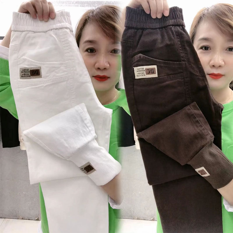水洗牛仔裤女秋冬季新款加厚纯棉哈伦裤百搭束脚休闲裤宽松九分裤