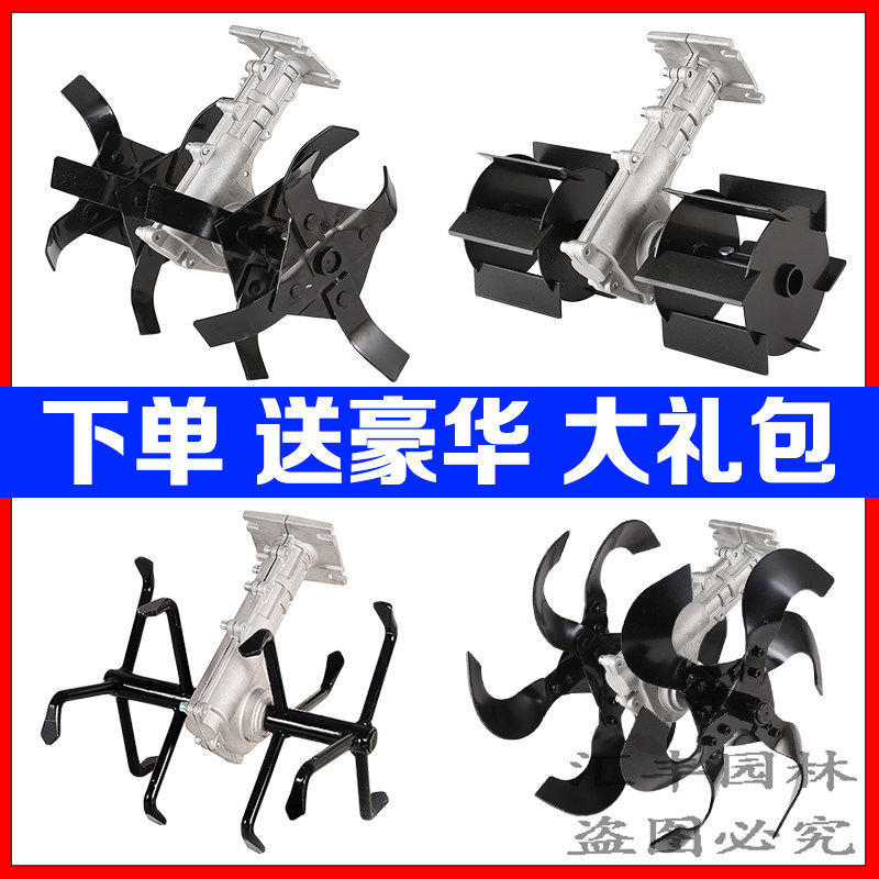 割草机配件除草轮小型松土机翻土微耕开沟头锄草机头松土轮子刀片